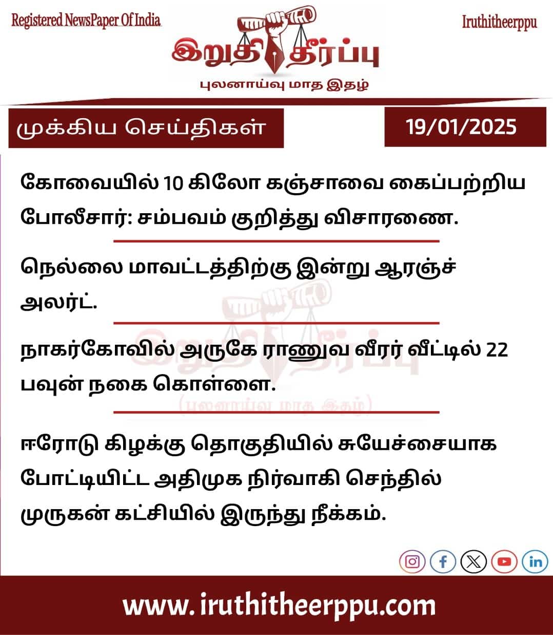 BREAKING NEWS TODAY BREAKING NEWS BREAKING NEWS TODAY BREAKING NEWS January 19, 2025 74 Share FacebookWhatsAppTwitterTelegramEmailPrint IRUTHI THEERPPU BREAKING NEWS RELATED ARTICLESMORE FROM AUTHOR TODAY BREAKING NEWS TODAY BREAKING NEWS | IRUTHI THEERPPU NEWS LEAVE A REPLY Cancel reply Please enter your comment! Please enter your name here You have entered an incorrect email address! Please enter your email address here Save my name, email, and website in this browser for the next time I comment.