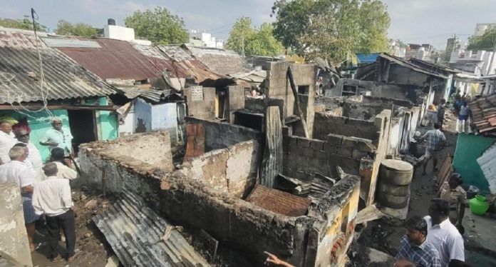 விருதுநகரில் சொக்கநாத சுவாமி கோயில் அருகே உள்ள பெருமாள் கோயில் தெருவில் பால் பண்ணை பேட்டை உள்ளது. இங்கு 100க்கும் மேற்பட்ட குடியிருப்புகள் உள்ளன. 400க்கும் மேற்பட்டோர் வசித்து வருகின்றனர். மிக நெருக்கமாக வீடுகள் உள்ள இந்த பகுதியில் நேற்று அதிகாலை சுமார் 4 மணி அளவில் திடீர் தீ விபத்து ஏற்பட்டது. தீ வேகமாக அடுத்தடுத்த வீடுகளுக்கும் பரவியது. இதனால் பொதுமக்கள் அலறி அடித்து ஓட்டம் பிடித்தனர்.