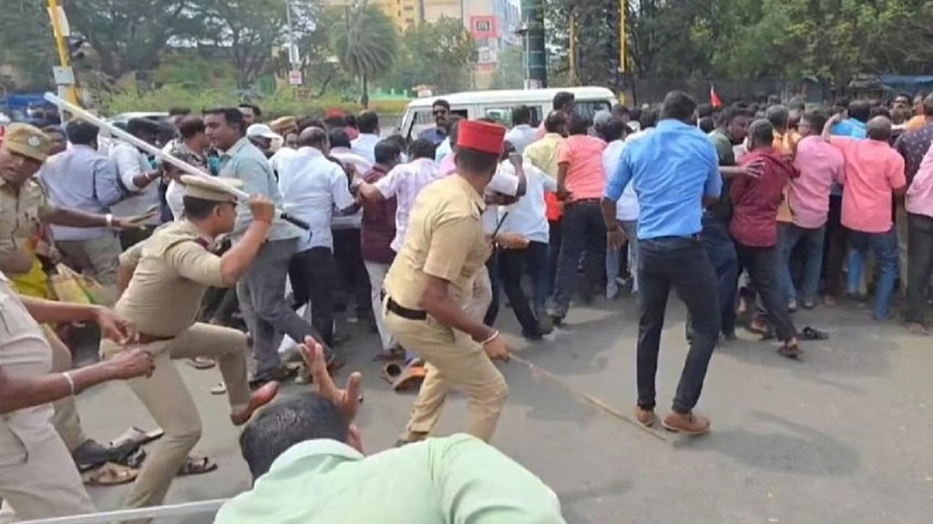 மேலும், காயமடைந்த 13 ஊழியர்கள் அரசு மருத்துவமனையில் சேர்க்கப்பட்டுள்ளனர். இந்த போராட்டத்தில் ஈடுபட்ட ஊழியர் சங்கத் தலைவர் சரவணனை போலீஸார் கைது செய்தனர். இந்த சம்பவம் புதுச்சேரியில் பரபரப்பை ஏற்படுத்தி உள்ளது.